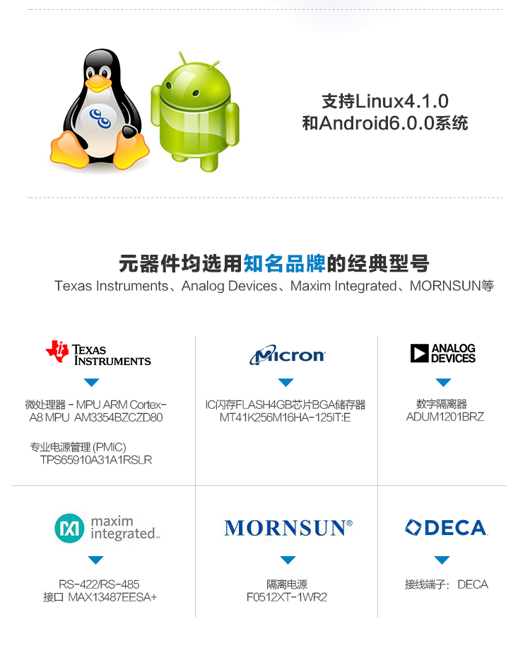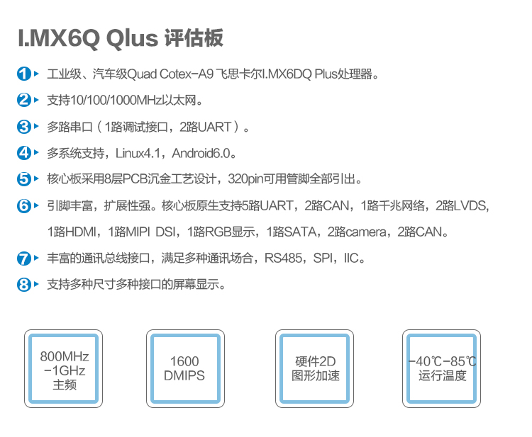 I.MX 6QuadPlus系列提供顯著圖形和存儲器性能增強功能,并與廣泛的I.MX 6處理器是引腳兼容的。此器件是四核ARM, Cortex-A9平臺,運行頻率高達1.2 GHz,帶有1 MB L2緩存,先進圖形,預取和解析引擎以及優化的64DDR32通道、32LPDDR2支持。這個系列的器件集成了FlexCAN、MLB總線、PCI ExpressSATA-2,具有卓越的連接性,同時集成了LVDS、MIPI顯示器端口、MIPI攝像頭端口和HDMI v1.4,是需要較高圖形性能的先進的消費電子、汽車和工業多媒體應用的理想多核平臺。
